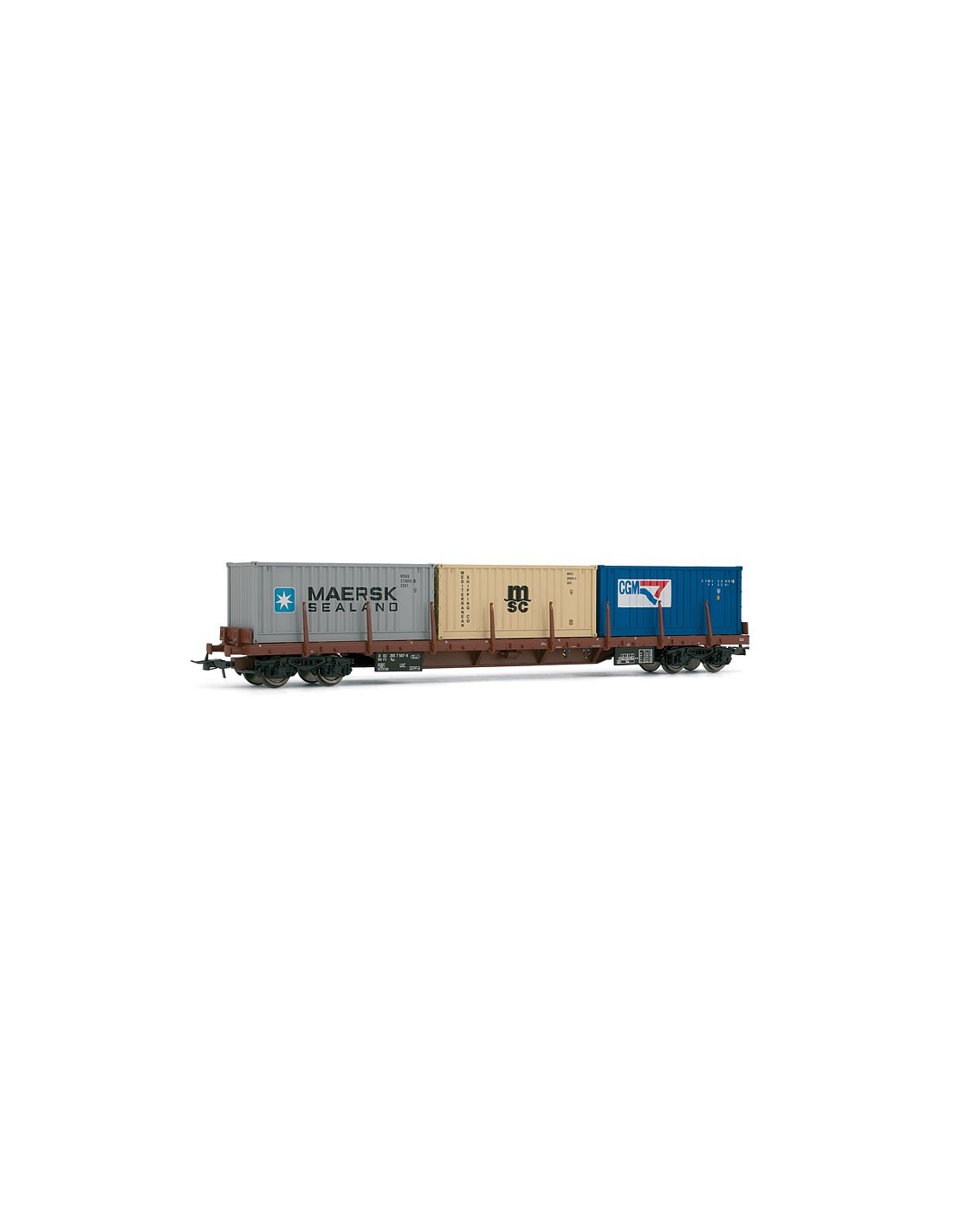 3 20-Fuß-Container der Marken „Maersk“, „MSC“ und „CGM“. Ära V.